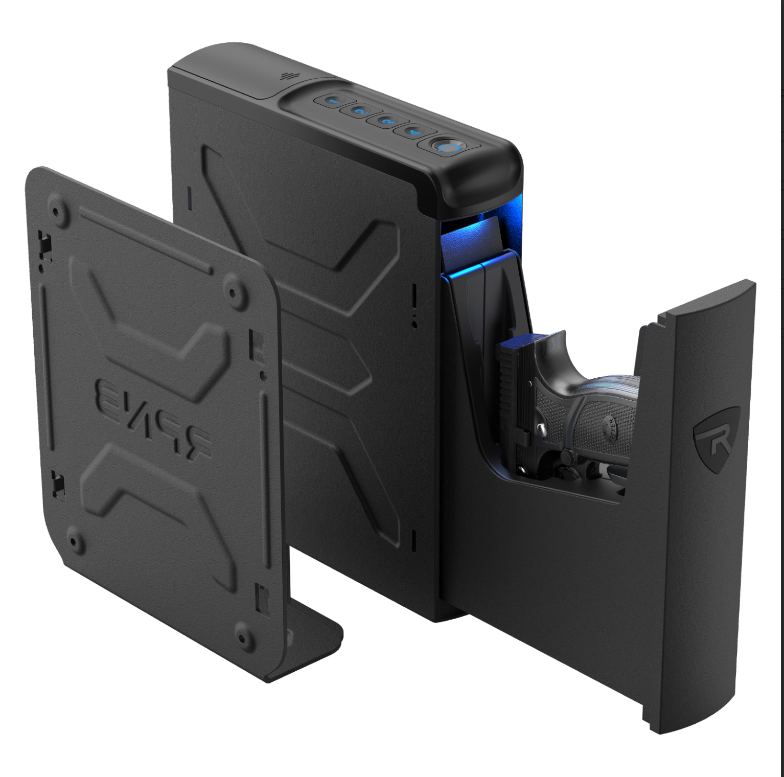 RPNB Carbon Knight handgun safe allows you to store your pistol in seconds with smart fingerprint sensor. The slim vertical Design stores easily under a desk or nightstand, discreetly on a bookshelf, or inconspicuously in a vehicle. It also provides long-lasting strength and use for years to come with a higher level of security. The advanced outside battery compartment enables the batteries to be replaced without opening the safe. For added convenience, mountable from right or left side, depending on desired preference. The RPNB mounted nightstand pistol safe can store a full-size handgun (with no light or optics of any kind) up to 8.5 inches in length, plus a spare magazine.