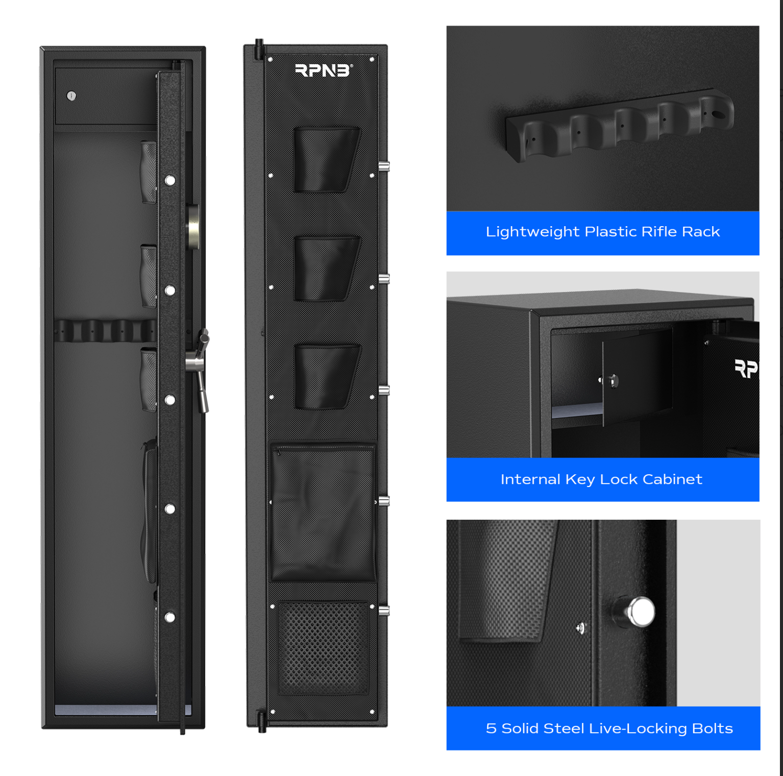 RPNB RP5FR Large Biometric Rifle Safe, Electronic Gun Security Cabinet for 5 Rifles